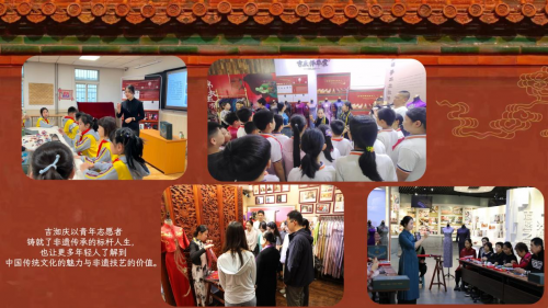 在社区服务方面,吉氏家族深入朝阳里社区、学校,敬老院等开展盘扣制作、刺绣体验活动,让非遗技艺触手可及。这些活动不仅让社区居民近距离感受传统技艺的魅力,更在潜移默化中传播着工匠精神。一位参与活动的老人感慨道:没想到我这把年纪还能学会做盘扣,这让我感受到了优秀传统文化的温度和力量。