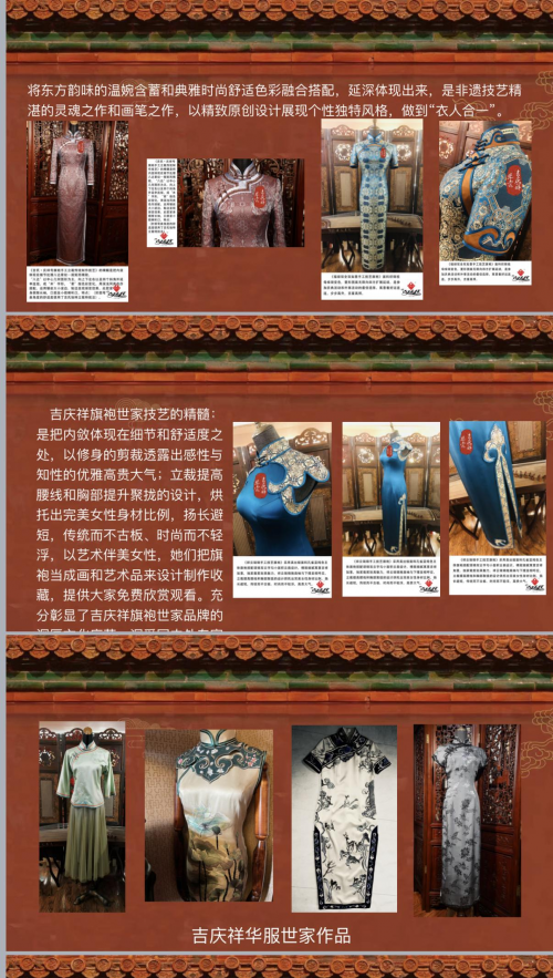 当历史的长河奔涌向前,吉氏家族仍在一针一线中编织着时代的脉络。从吉庆祥女士一把剪刀铸就辉煌的坚守,到吉洳庆衣人合一的创新探索,五代人的接力不仅是技艺的传递,更是一种文化基因的生生不息。他们以旗袍为舟,以匠心为桨,在传统与现代的碰撞中,让中国非遗技艺焕发出永恒的生命力。